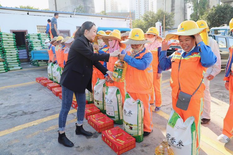 隨后總裁陳云、副總羅京軒、工會主席高斐斐、婦聯(lián)主席熊牡丹分別為部分職工發(fā)放慰問品,并送上了節(jié)日問候。
