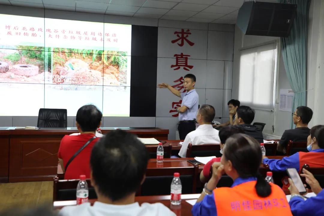 為更好的迎接“國家衛(wèi)生城市”復(fù)審工作,做好環(huán)境衛(wèi)生保障工作,根據(jù)三亞市委、市政府對衛(wèi)生保障工作的部署要求和集團三亞區(qū)域工作實際。3月25日下午,明佳集團組織開展《國家衛(wèi)生城市質(zhì)量標(biāo)準(zhǔn)》培訓(xùn)。明佳集團總裁陳云出席培訓(xùn)并做重要部署安排,培訓(xùn)由海南省愛國衛(wèi)生專家、三亞市住建局調(diào)研員夏德華主講,公司副總、各部室負(fù)責(zé)人、設(shè)備管理部、生產(chǎn)管理中心及各區(qū)域質(zhì)檢員、隊長(含)級以上管理人員參加此次培訓(xùn)。