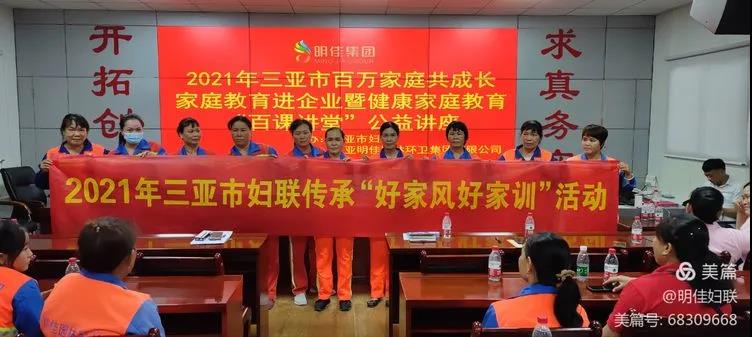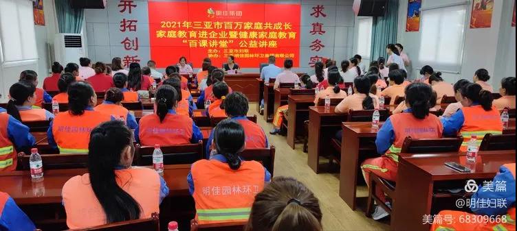 為引導(dǎo)廣大婦女帶動(dòng)家庭成員大力培育新時(shí)代家庭觀,推動(dòng)社會(huì)主義核心價(jià)值觀落細(xì)落小落實(shí)到家庭,切實(shí)落實(shí)家庭教育立德樹人的根本任務(wù),根據(jù)省婦聯(lián)“家家幸福安康工程”部署,結(jié)合“我為婦女群眾辦實(shí)事”實(shí)踐活動(dòng)。2021年7月20日下午15時(shí)30分,由市婦聯(lián)主辦、明佳婦聯(lián)協(xié)辦的2021年三亞市百萬家庭共成長(zhǎng)家庭教育進(jìn)企業(yè)暨健康家庭教育“百課講堂”公益培訓(xùn)課在明佳三樓會(huì)議室成功舉行,培訓(xùn)內(nèi)容為家庭教育知識(shí)和女性健康知識(shí),明佳集團(tuán)80余名職工參加了此次培訓(xùn)。