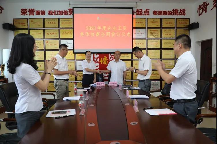 7月15日,《企業(yè)工資專項集體合同》簽訂儀式順利舉行。公司總裁陳云、工會主席高斐斐等6名協(xié)商代表參加了本次簽訂儀式。陳云表示,公司工會在開展此次集體協(xié)商過程中,能夠以企業(yè)職工的意愿和需求為出發(fā)點,以切實維護職工權益為目標,積極引導職工做企業(yè)發(fā)展的主人,不僅為企業(yè)和職工協(xié)商共謀搭建了平臺,還為企業(yè)注入了活力和生機,實現(xiàn)了企業(yè)和職工雙方的共贏。