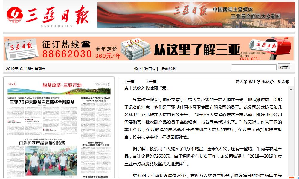 三亞日?qǐng)?bào):三亞市開(kāi)展全國(guó)扶貧日暨愛(ài)心扶貧大集市活動(dòng) 百余種農(nóng)產(chǎn)品展銷引搶購(gòu)