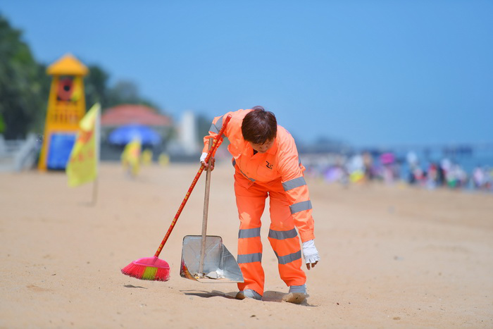 不管風(fēng)吹日曬、酷暑嚴(yán)寒,他們總是起早貪黑、兢兢業(yè)業(yè),在海灘、在街道、在公廁、在田野、在橋底、在垃圾轉(zhuǎn)運站隨處可見他們的身影,城市的干凈整潔離不開他們勤勞的雙手,他們才是真正的城市美容師,這就是環(huán)衛(wèi)工人的工作寫照。